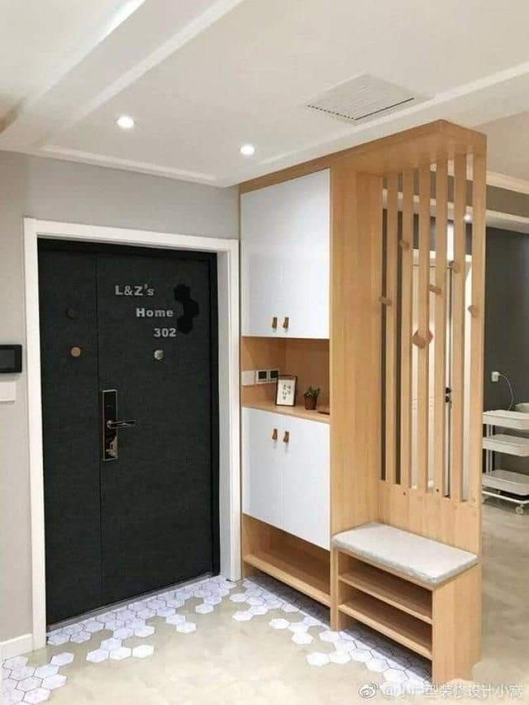 هذا التصميم يُعتبر مثالي لتقسيم المساحات بطريقة أنيقة، مع توفير حلول تخزين ذكية وعملية للمداخل.