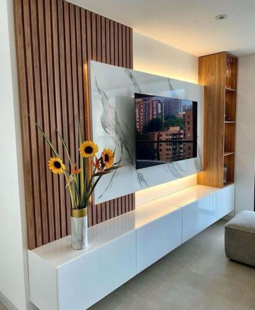 - تصميم جمالي يعزز ديكور الجدار وينظم المساحة المحيطة بالتلفاز