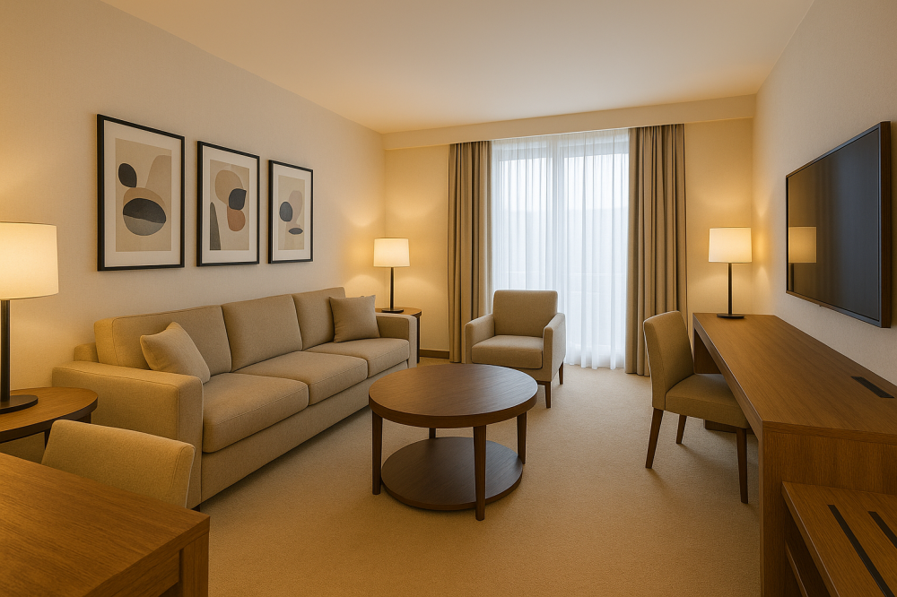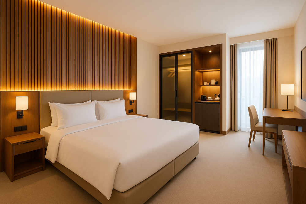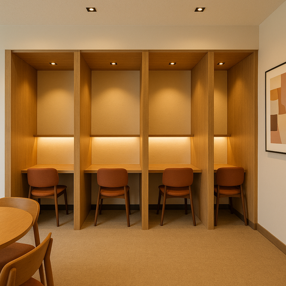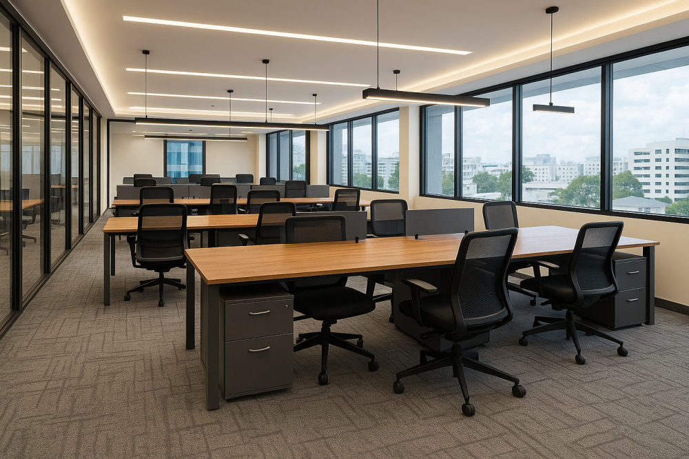 - مكتبي: محطات عمل، غرف اجتماعات، ريسيبشن—كفاءة، عزل صوتي، مسارات أسلاك مخفية.