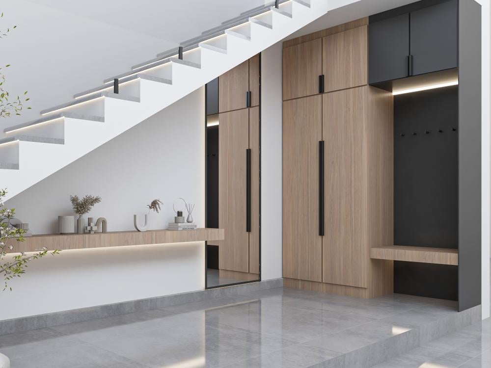- تصميم مُخصص حسب المقاسات الدقيقة لموقعك، ليتناسب مع المساحات الصغيرة ويستغل المساحة أسفل الدرج بفعالية.