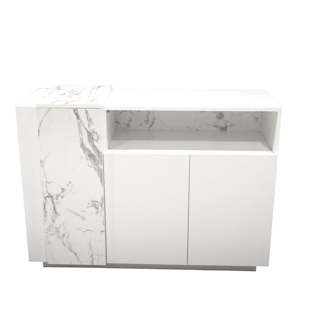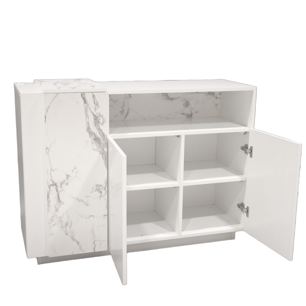 ركن قهوة أبيض راقي من نيت هوم | تصميم فاخر من خشب بديل الرخام مع بابين ورف جداري
