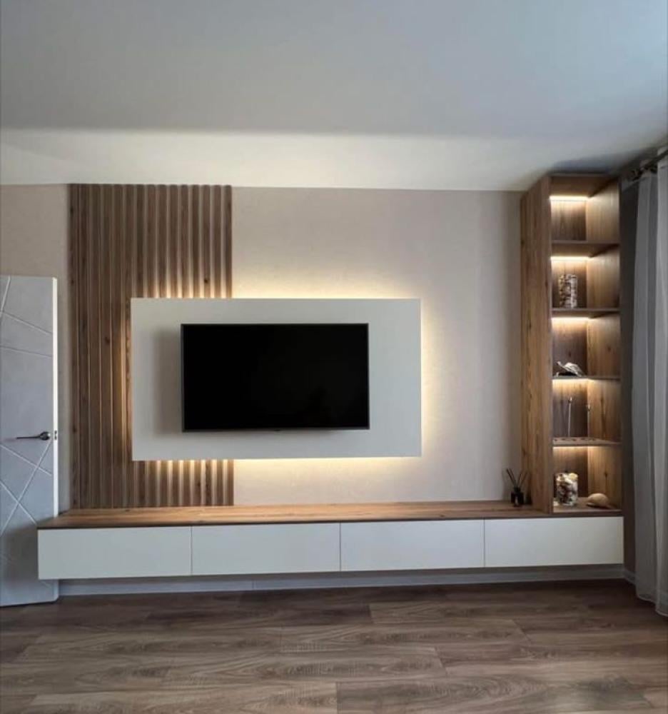 طاولة تلفزيون جدارية مع ديكور ارفف